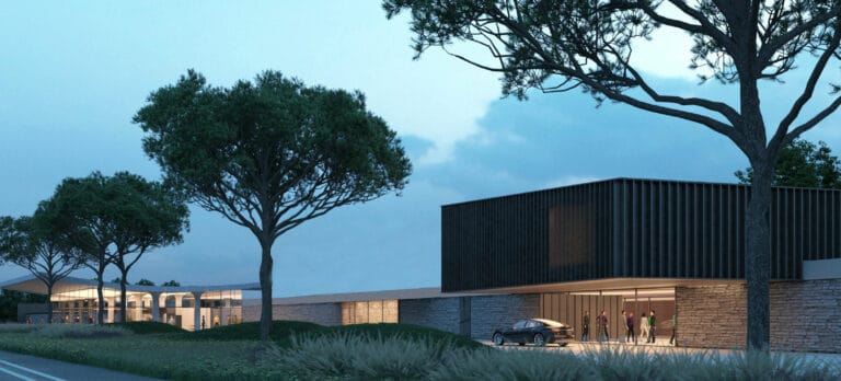 A luxury hotel with several gourmet offerings, large sports areas in a strategic location (for wine) starting by the Café Bistro : where you can stop for a quick lunch or an aperitif. Made out of an old gas pump, it has been recovered and transformed into Le Fucine . A beautiful name that makes explicit to us its being, as the dictionary states, “An environment that encourages the carrying out of activities not necessarily praiseworthy or the formation of socially and culturally relevant personalities.” A total renovation work commissioned by the Danieli Group , developed by Marco Zito who respected the architecture of the ten supporting columns present enhanced by an arched canopy designed by Marcello D’Olivo in 1962. The concrete sail effect, covering the structure, mitigates the whole , the glass windows lighten the imposing volume. Inside, a powerful lighting design does the rest: it attracts.
